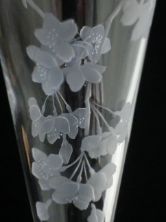 繊細で優美な枝垂れ桜の花姿を、サンドブラスト技法を駆使し、手仕事により丹念に彫り込みました。慶時の贈り物にしたら、きっと喜ばれると思います。 |